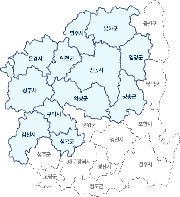 경북북부 근로자건강센터는 경북 북부지역 총 12개 시ㆍ군의 근로자 건강을 위해 최선의 노력을 다하고 있습니다. 구미시, 김천시, 상주시, 칠곡군(구미국가산업3단지), 영주시, 문경시, 안동시, 예천군, 봉화군, 의성군, 영양군, 청송군