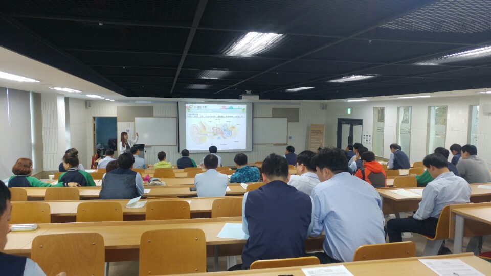 귀마개 밀착도 검사 페이지 정보 작성자 관리자 댓글 0건 조회 2,324회 작성일 16-10-31 15:41 목록 본문 소음이 발생하는 사업장에 청력 보호 교육과 귀마개 밀착도 검사를 진행하였습니다. 근속년수가 오래 되신 분들이 많으셔서 그런지 귀마개도 잘 착용하고 계시네요. 그 와중에도 본인은 귀마개 잘 착용하고 있다며 큰소리 당당하게 치시던 분은 귀마개 차음이 10dB나왔습니다. 내가 착용하는 귀마개가 잘 착용하고 있는건지 궁금하시면 근로자건강센터에서 귀마개 착용 검사 한번 해보세요^^ 댓글 0 댓글목록 등록된 댓글이 없습니다.